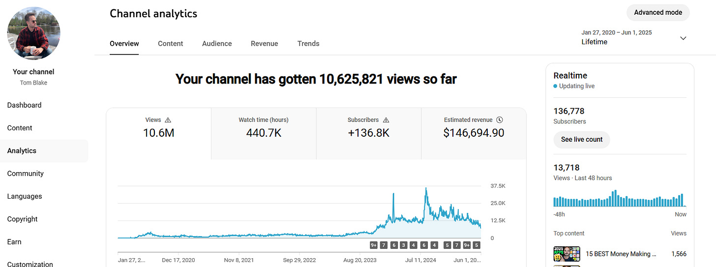 I’ve written about my $250,000+ YouTube framework before. But the idea is fairly straightforward in terms of building semi-passive YouTube channels.